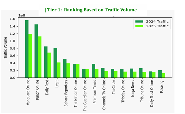 Total traffic across Nigerian digital media platforms fell from over 1.04 billion visits in 2024 to 769 million in 2025, marking one of the most significant structural changes in the country’s media landscape in recent years.